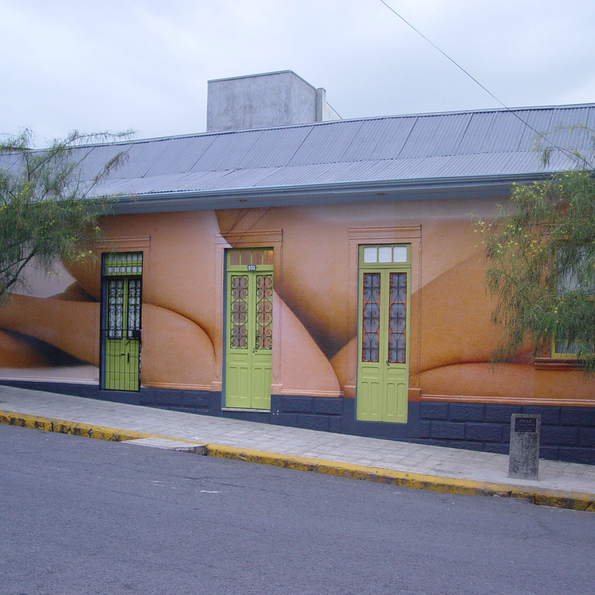 Las intenciones de cada una de ellas hace que su trabajo adopte diversas características formales: Karla Solano ha trabajado mucho sobre soportes no tradicionales, como acetatos y lienzos, y no ha tenido formatos regulares o estandarizados sino que cada obra es pensada a partir de su temática hacia lo formal, seleccionando dimensiones y presentación de acuerdo a cada obra específica. Viene ampliando sus formatos a medida que pasa el tiempo, hasta llegar a la pieza que presenta en TEOR/éTica, que cubre toda la fachada, de casi 20 metros. Las piezas que muestra Rachelle Mozman, provienen de su última serie, realizada posteriormente a la serie que presentó en octubre para la bienal de Panamá, curada por Rosina Cazali, que presentaban niñas del universo suburbano norteamericano, ese mundo extraño y aparentemente aislado y protegido de lo inesperado, impredecible o caótico de la vida urbana, en donde el entorno y la decoración que rodean a las niñas parecen fijadas en el tiempo, impávidas ante los dramas de la vida diaria. Los rostros miran fijos hacia el objetivo o hacia un punto en el espacio de la misma foto, como en un extraño trance que las convierte en una especie de “alien” infantil, ataviadas con trajes intemporales de revista de economía doméstica, atuendos a los que algo falta para ser reales. La serie que presentamos aquí está compuesta por imágenes tomadas en nuevos suburbios de Panamá y aunque incluyen algunos elementos que las diferencian sutilmente de las primeras, tomadas en New Jersey, mantienen esa condición de lo distante e inasible, evidencia de las similitudes que hacen de la “suburbia” algo homogéneo y equivalente en cualquier lugar, un ambiente tan sin carácter que se vuelve ominoso y temible. Ana Urquilla, presente en el certamen de arte emergente del MADC con una obra ligada a ciertos parámetros estéticos de la belleza femenina, fue además seleccionada en la bienal salvadoreña para participar en la edición centroamericana de fines del 2006. La obra que presenta en TRES es de corte más poético y soñador, una especie de doble caminata en formato de instantánea presentada como un camino fluido que sigue el contorno de la galería: por un lado, sus pies recorren un día entero diversos espacios, y por otro sus ojos, que no dejan de mirar al suelo y seguir ensimismados, su propio recorrido cotidiano. Colocadas en la parte inferior de los muros de la galería, las pequeñas piezas obligan al espectador a tomar una posición similar a la de la fotógrafa, y a seguir también su huella caminando y viendo hacia abajo. Por su parte, Karla Solano ha creado una obra totalmente nueva e inédita, dentro de la línea de lo que presentó recientemente en el muro externo del Centro Wifredo Lam en la IX Bienal de la Habana de abril 2006, forrado con la imagen gulliveresca de los dedos de un pie. Ya en la Bienal de Shanghai del 2004, había forrado el espacio que se le destinó, paredes, piso y techo, con ampliaciones exageradas de diversas superficies de su epidermis y del pubis, provocando una sensación de gran matriz que rodeaba al espectador al entrar al recinto. Aquí, es una imagen de su cuerpo entero, reclinado, impreso con tonalidades cargadas de una sensualidad casi maternal, y que descansa a lo largo de la fachada de TEOR/éTica. En esta muestra, desde el pequeño formato de una huella hasta la impresión gigantesca de un cuerpo, el trabajo de estas tres fotógrafas se centra en una percepción del cuerpo y su significado en un espacio: mientras que como una gran valla, el cuerpo de Karla Solano se presenta de manera simple, un paisaje de dunas adherido a los detalles arquitectónicos de un edificio para crear otra topografía superpuesta, son los pies de Ana Urquilla que conducen al espectador a un recorrido más intimista, un espacio para la reflexión y el vagar en el tiempo. Desprovistas de toda sensualidad, casi asexuadas, las jóvenes inmateriales que habitan las “mise-en-scène” de Rachelle Mozman funcionan como una serie de figuras arquetípicas de un tipo de universo aislado del mundo real y que se expande en la medida en que el suburbio planificado remplaza la espontaneidad de la cotidianidad urbana.
