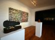 Aunque la instalación de Saborío, hace desde el principio un enlace con la obra de Poyón, desde su ‘lugar’ de acción –ya que por medio de un micrófono se pueden escuchar las conversaciones de la exposición en ese espacio menos formal del salón–, como un lugar de intromisión del clásico cotilleo en el mundo del arte. Definitivamente se trata de un acercamiento más afectivo al lugar donde alguna vez estuvo su espacio desde una condición más comercial y pragmática y donde vuelve con la legitimación del arte que acorta esas distancias “temporales”.