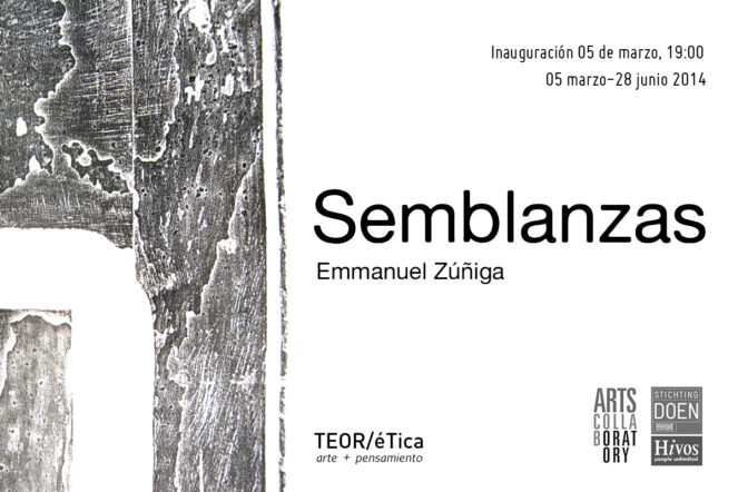 ACERCA DE LA EXPOSICIÓN Semblanzas Maneras en que los objetos inscriben sus memorias. 05 marzo – 28 junio 2014 La propuesta de Emmanuel Zúñiga nace como una exploración íntima de su memoria personal; lo hace a través de impresiones de objetos que lo han rodeado desde su infancia. Imágenes mundanas y reconocibles como puertas y…