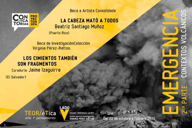 ACERCA DE LA EXPOSICIÓN Emergencia: Contextos Volcánicos 2 AFICHE DESCARGABLE DE LA EXPOSICIÓN 22 de octubre, 2014 a febrero del 2015 Proyectos invitados a recibir la Beca a Artista Consolidada y la Beca de Investigación Colección Virginia Pérez-Ratton, 2014. Entre las comunidades artísticas de una región como lo es la del Istmo centroamericano y el…