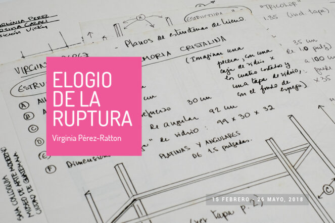 ACERCA DE LA EXPOSICIÓN Elogio de la ruptura 15 febrero – 26 mayo Salas 01 y 02 – Lado V – Centro de Estudio y Documentación AFICHE DESCARGABLE DE LA EXPOSICIÓN // DOWNLOADABLE POSTER OF THE EXHIBITION Elogio de la ruptura es una revisión a una exposicion de 1999 que iba a reunir la obra…
