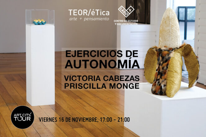 Art City Tour – Noche en Blanco Viernes 16 noviembre 17.00 – 21.00hrs Exposición abierta al público EJERCICIOS DE AUTONOMÍA De Victoria Cabezas y Priscilla Monge 26 de setiembre – 10 de diciembre 2018 Esta exposición reúne el trabajo de dos artistas costarricenses, Victoria Cabezas y Priscilla Monge. Ambas han empleado modos experimentales de creación…