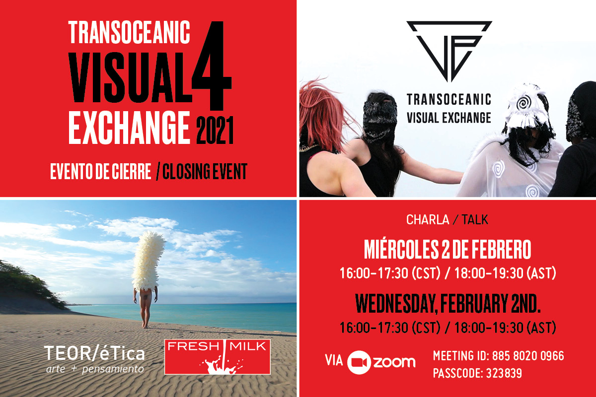 La cuarta edición de TVE – Transoceanic Visual Exchange llevada a cabo entre noviembre de 2021 y febrero de 2022 es una colaboración entre The Fresh Milk Art Platform (Barbados) y TEOR/ética (Costa Rica). Para esta edición de TVE se logró hilvanar una selección de trabajos recientes de videoarte producido tanto en la región de Centroamérica como en la región del Caribe insular, a partir de una convocatoria abierta y un modelo de práctica curatorial comunitaria, para ser presentados mediante una exhibición virtual.