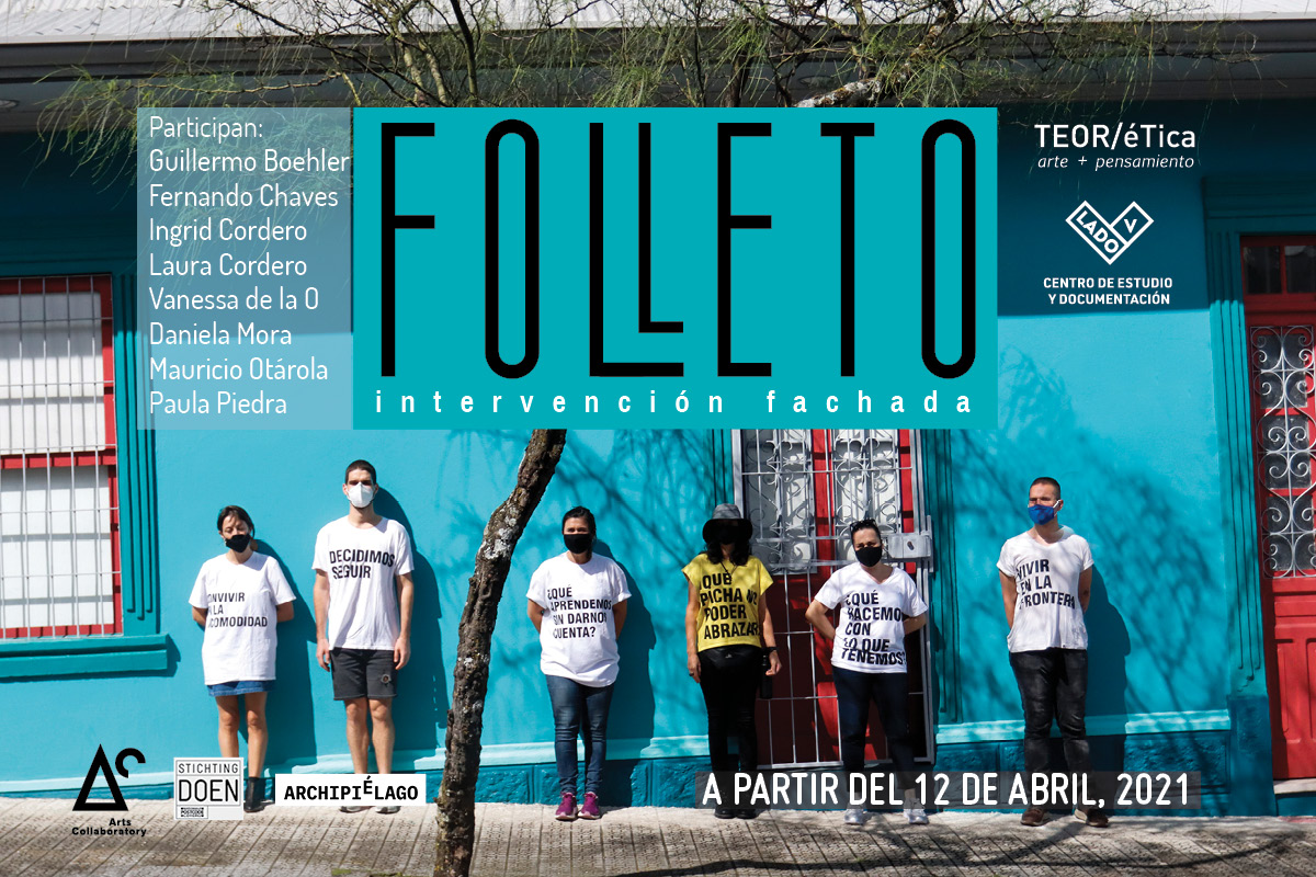 La intervención a la fachada es el cierre de un largo proceso de trabajo llevado a cabo entre marzo de 2020 y marzo de 2021 por el proyecto FOLLETO convocado por ARCHIPIÉLAGO. FOLLETO surgió como una iniciativa de ARCHIPIÉLAGO que se propuso como una metodología para leer/estar juntes y mapear territorios/intereses/ideas/proyectos comunes.