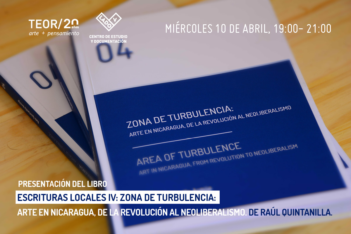 Zona de turbulencia: Arte en Nicaragua, de la revolución al neoliberalismo es el cuarto libro de la serie “Escrituras locales. Posiciones críticas desde América Central, el Caribe y sus diásporas”, un proyecto editorial de TEOR/éTica enfocado en pensar cómo se ha transformado las formas de ver y hacer arte en la región durante las últimas cuatro décadas. Este nuevo libro continúa con nuestro objetivo de hacer accesible una selección de los más relevantes discursos y posicionamientos críticos que le han dado forma a los paradigmas críticos en América Central y el Caribe.