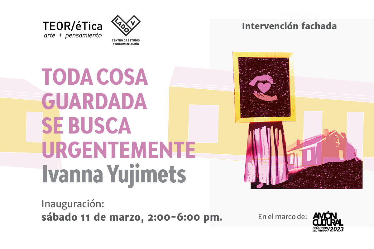 Toda cosa guardada se busca urgentemente es la propuesta de la artista Ivanna Yujimets para intervenir la fachada de TEOR/éTica. Ivanna juega con la arquitectura de la casa de TEOR/éTica para invitar a les transeúntes de barrio Amón a ir descubriendo distintos elementos en las escenas que construye y los espacios ocultos o ignorados de la fachada.